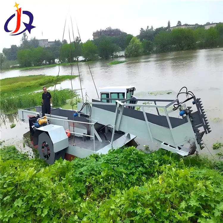 مجهزة بقرص قطع دوار أو شفرات من النوع الزاحف، عمق القطع قابل للتعديل (0.5-2 متر)، مما يلبي متطلبات الحصاد للنباتات المائية المختلفة مثل صفير الماء وطحلب البط. تم تجهيز مضخة مياه ذات ضغط عالي أو ناقل لولبي لتحقيق التجميع السريع ونقل النباتات المقطوعة، وتجنب التلوث الثانوي.