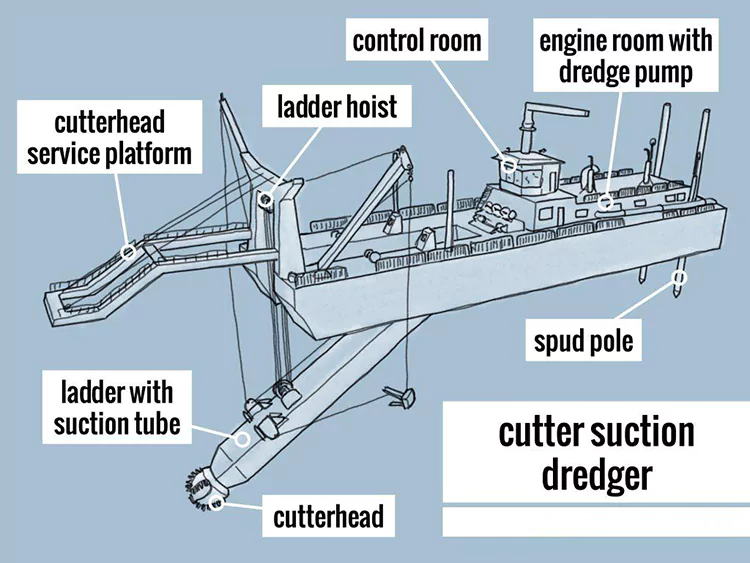 مقارنة مع انتزاع الكراكات: تقوم حفارة Cutter Suction for River Dredging بعمليات مستمرة بكفاءة عالية للغاية؛ تقوم جرافات الاستيلاء بعمليات دورية بكفاءة منخفضة نسبيًا، ولكنها مناسبة للمناطق التي تحتوي على العديد من الحجارة الكبيرة والحطام.